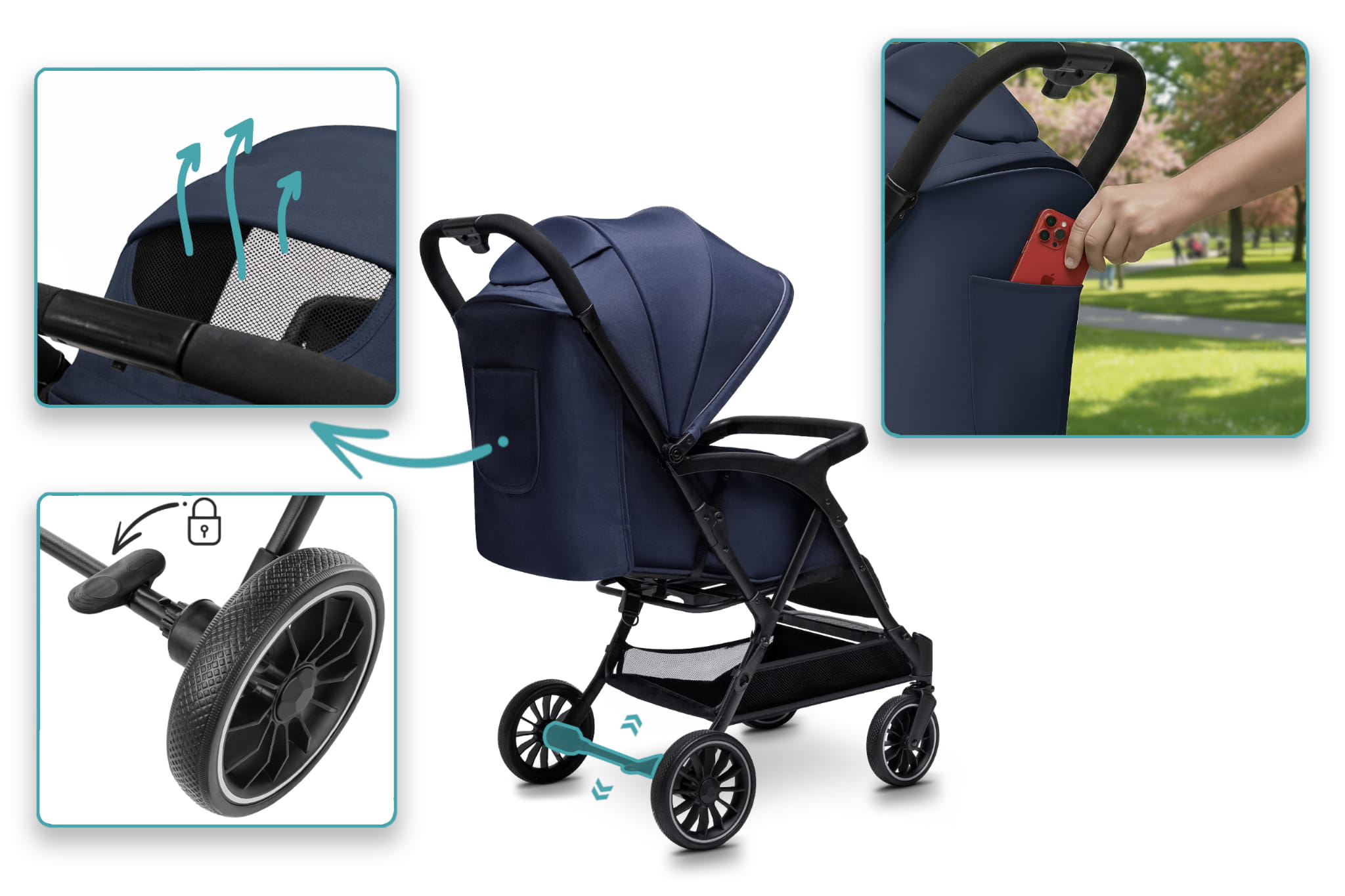 Plimbările zilnice cu cel mic sunt momente pline de bucurie și descoperiri. Căruciorul sport SIENA a fost creat pentru ca fiecare ieșire să fie confortabilă, sigură și fără griji – atât pentru copil, cât și pentru părinte. Este un cărucior ușor, pliabil, ideal pentru acasă, călătorii și plimbări zilnice în aer liber.