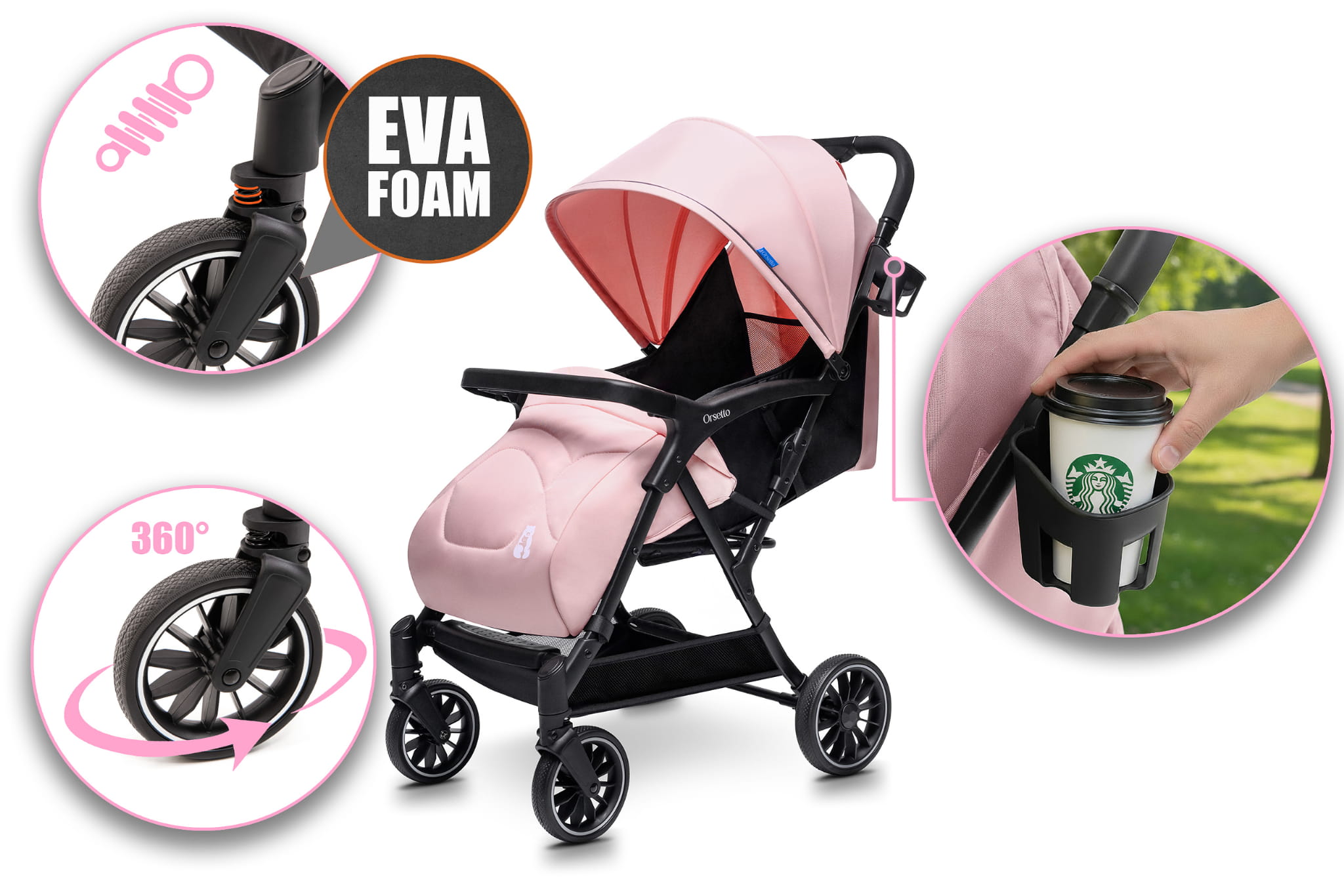 - Suport pentru pahar/biberon – practic pentru apă sau cafea