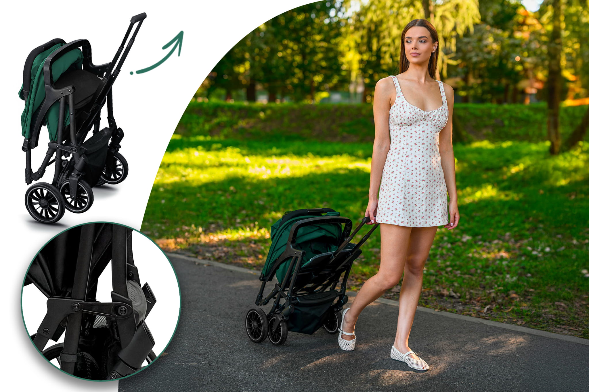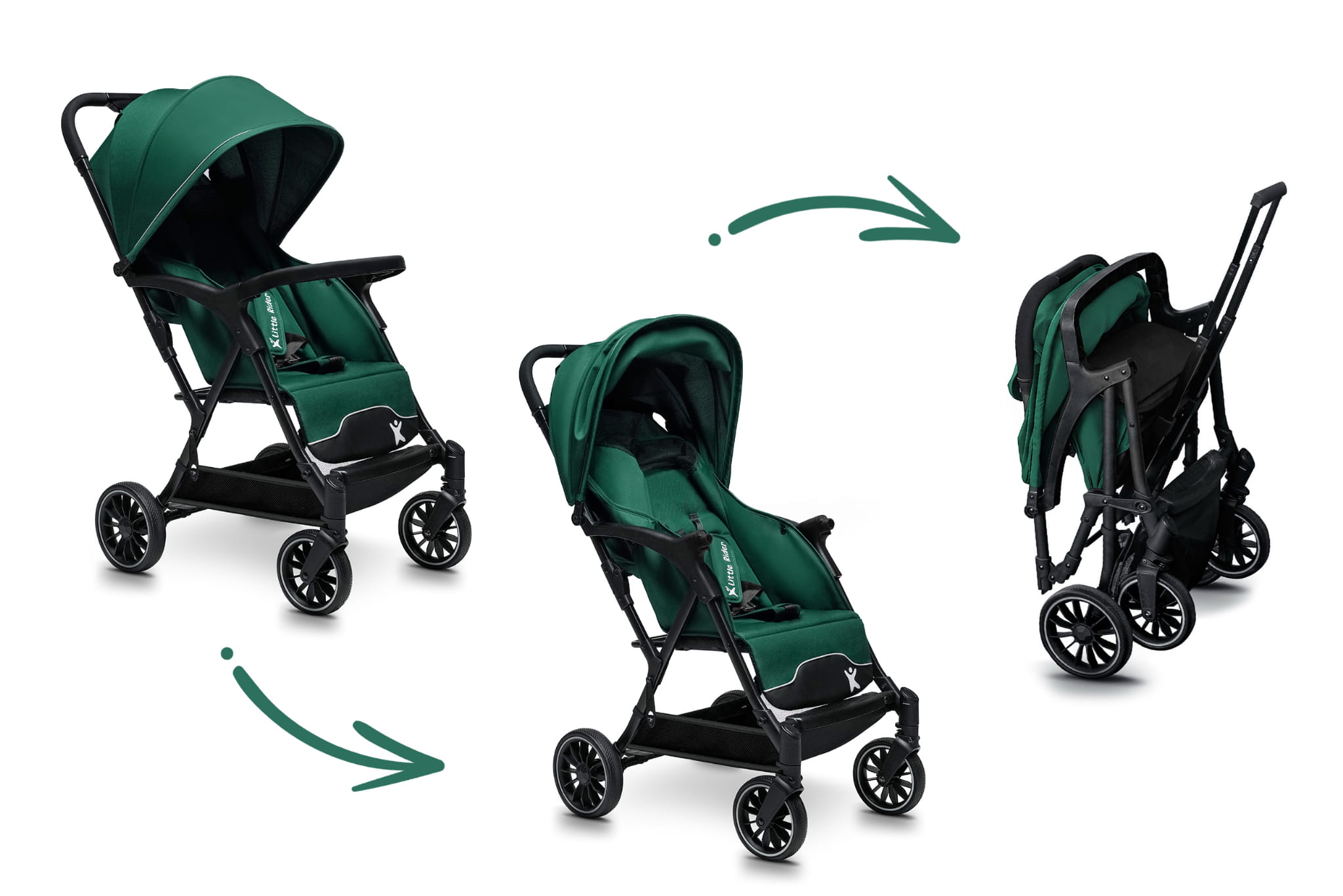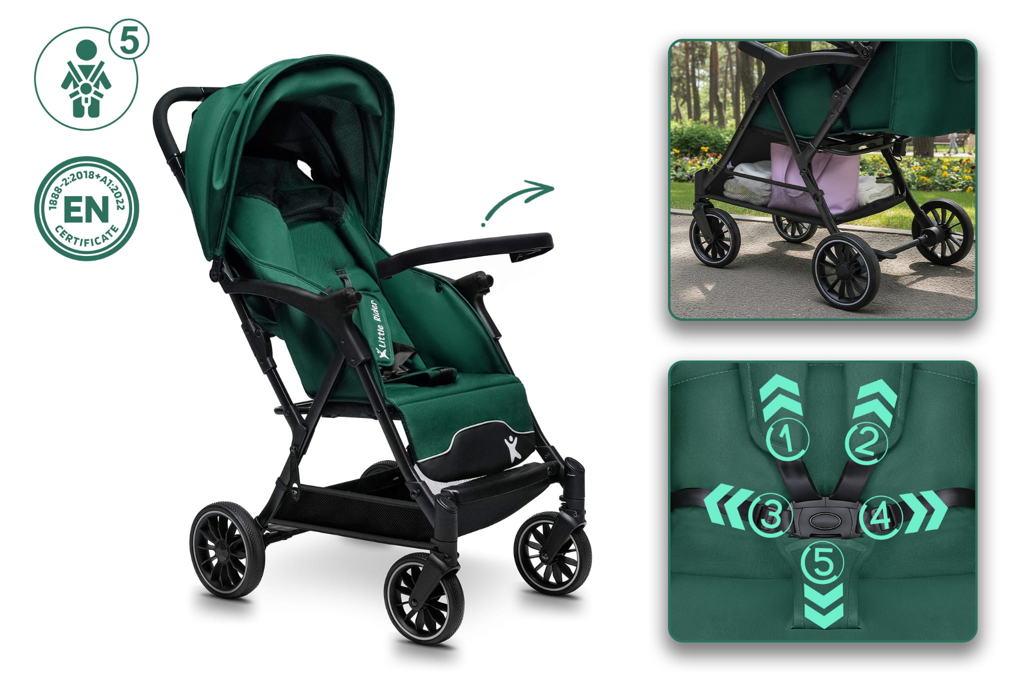 Carucior copii Little Rider Siena Culoare Verde, pliabil, ușor, compact Certificare Siguranta